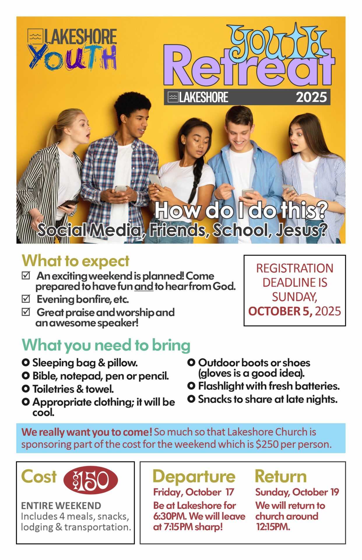YOU can be part of this ministry by sponsoring a youth. Any amount will help with the costs. Just select the YOUTH RETREAT SUPPORT section on the online giving or write Youth Retreat on your giving envelope.